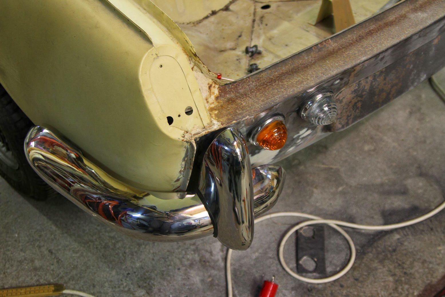 De vloer is (vrijwel) dicht en de deur sluit weer fatsoenlijk.Met behulp van een schaarkrik en wat balkhout heb ik het dashboard 1 mm naar voren gedrukt en toen de deurpost vast gelast aan de dorpelbalk. Het "luidsprekerpaneel" heb ik daarna ook weer met de dorpel verbonden. E.e.a. is nu weer goed stevig.De foto's spreken voor zich….Groet, Arthur